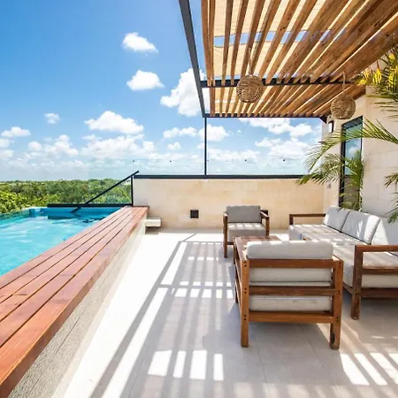Aldea Blu Vacations Lägenhet lägenhet ligger i Tulums Zama distrikt och har en terrass. Lägenheten består av 2 sovrum med uteplats, balkong och minibar.